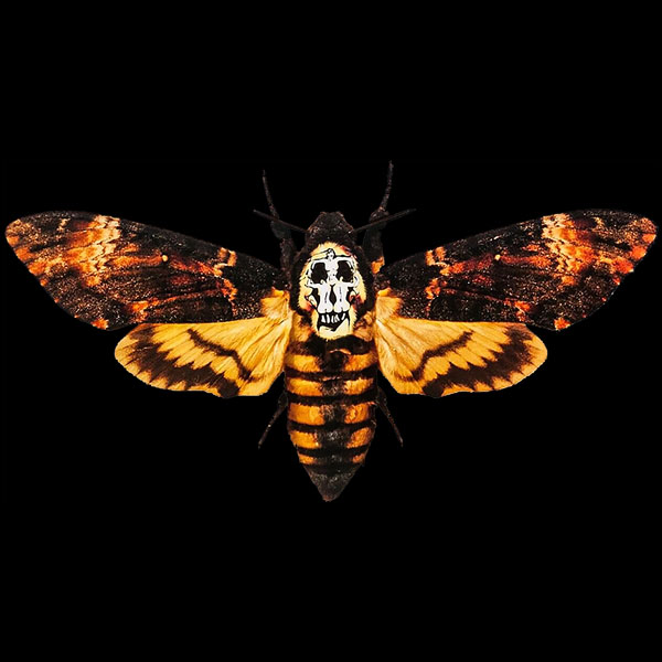 The moth in The Silence of the Lambs is a Death's-head hawkmoth (genus Acherontia), known for a distinct, skull-like marking on its thorax. Used by the killer "Buffalo Bill" to represent transformation, the moth symbolizes his desire to change, while the skull pattern represents death.