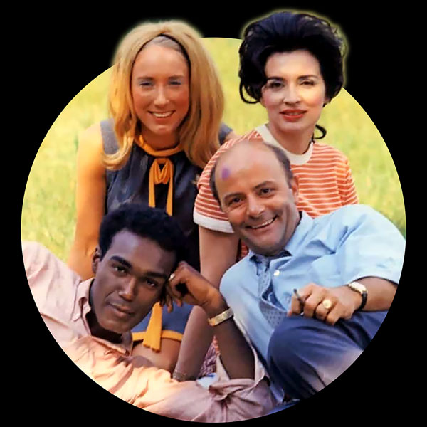 Night of the Living Dead picnic, classic shot of the core cast on a break.