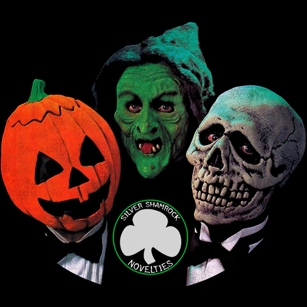 Silver Shamrock Novelties the sinister mask company from the 1982 horror film Halloween III: Season of the Witch. Run by warlock Conal Cochran in Santa Mira, California, the company produced three iconic Halloween masks a witch, a skull, and a pumpkin embedded with cursed stone microchips designed to kill children upon activation by a television commercial.